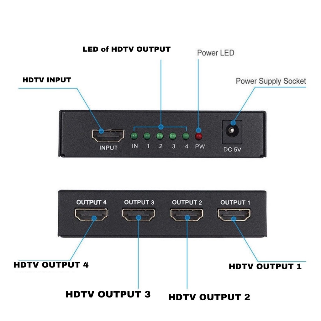 HDMI Splitter 1 In 2 /1 In 4 / 1 In 8 Out with Powered Signal Amplifier 4K/1080 for Astro / PC/ Laptop/ DVD