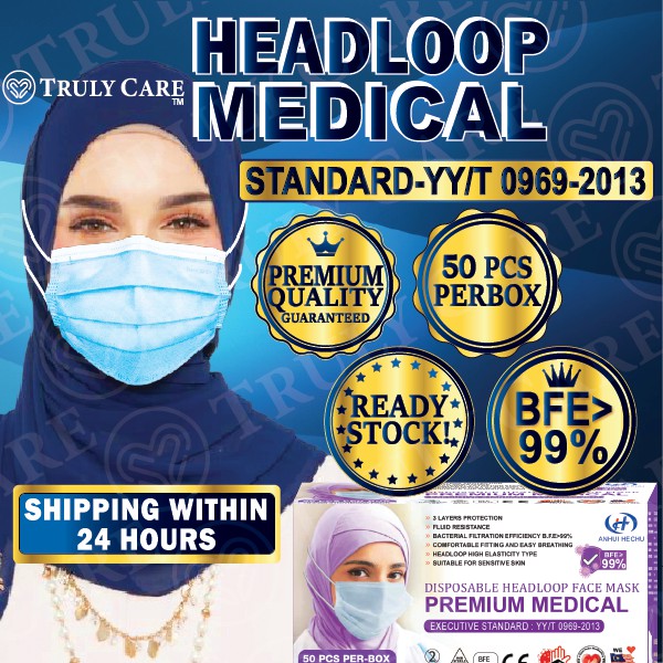 HEADLOOP MASK HIJAB FACE MASK HEAD LOOP FACE MASK [ PREMIUM ] HIJAB MASK HEADLOOP [ 50PCS/BOX ]