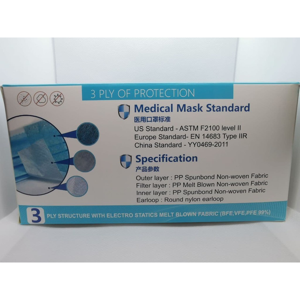 HEALTHGATE Medical Surgical Mask 3PLY(Adult Size) BFE/VFE/PFE 99% TOP Premium Grade 50pcs/PACK TOPENG PEMBEDAHAN HEALTHG