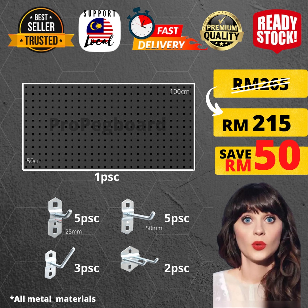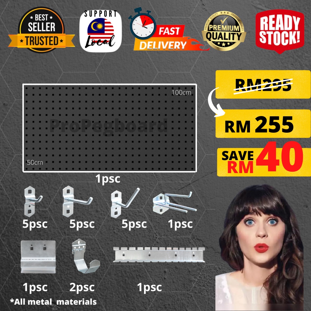 HEAVY DUTY (READY STOCK) Square hole board / Pegboard Tools Organizer 1000mm x 500mm