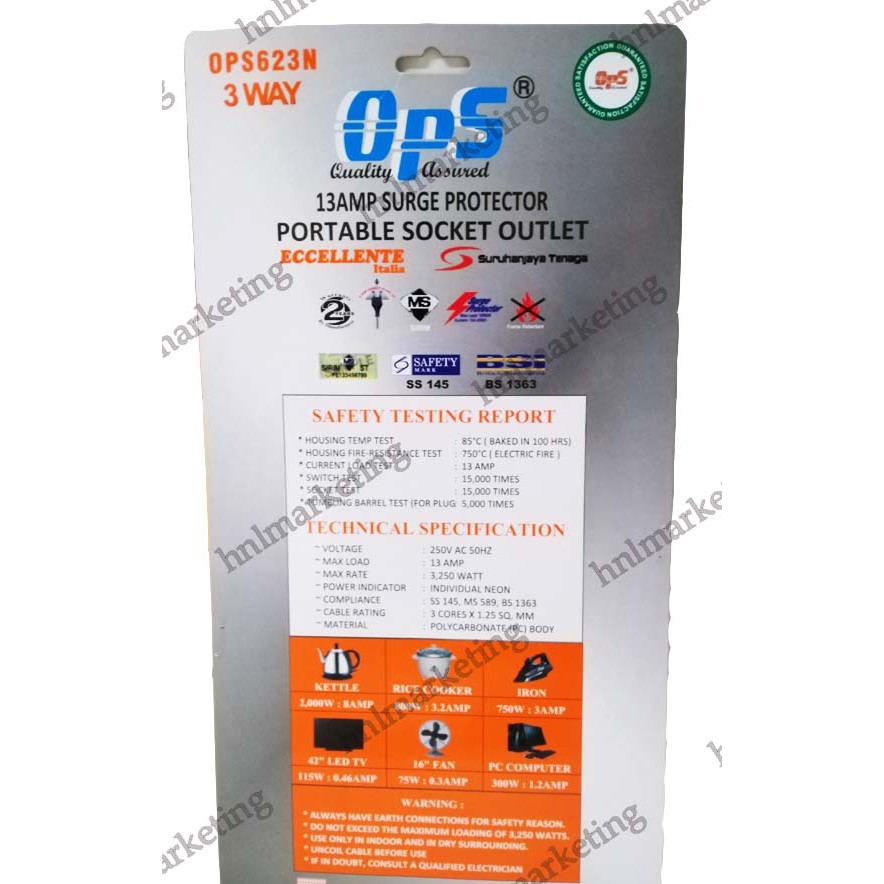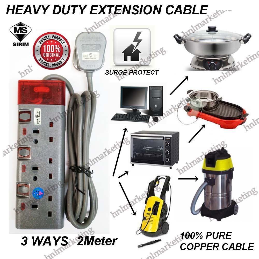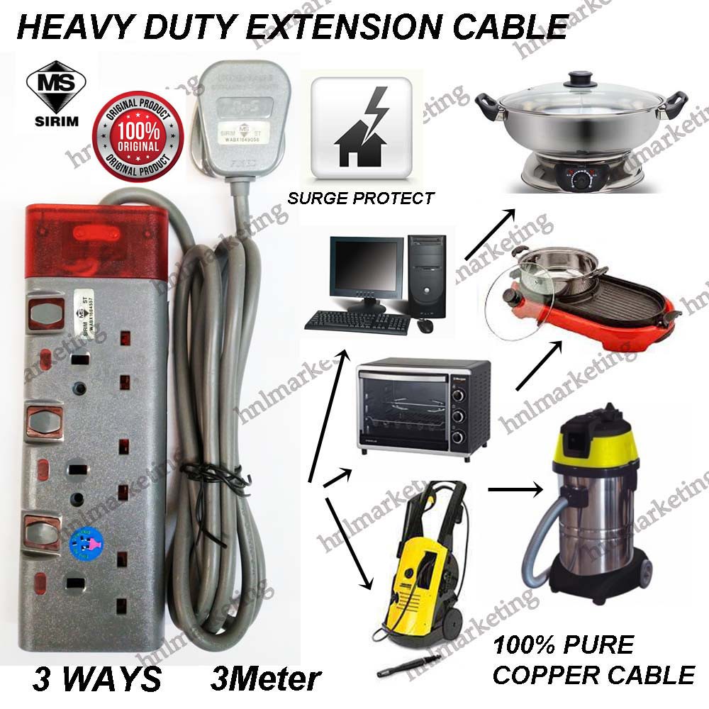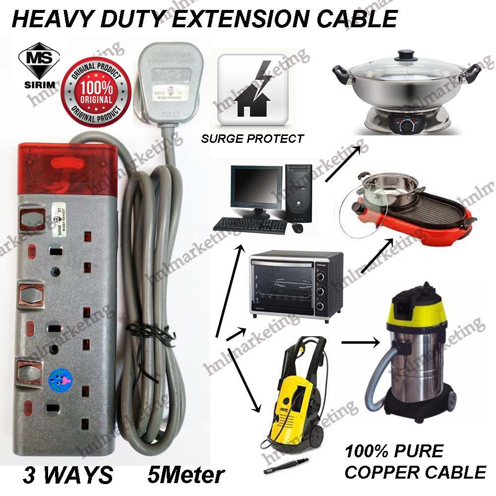HEAVY DUTY 3 WAY TRAILING SOCKET 2M 3M 5M ( EXTENSION CORD )