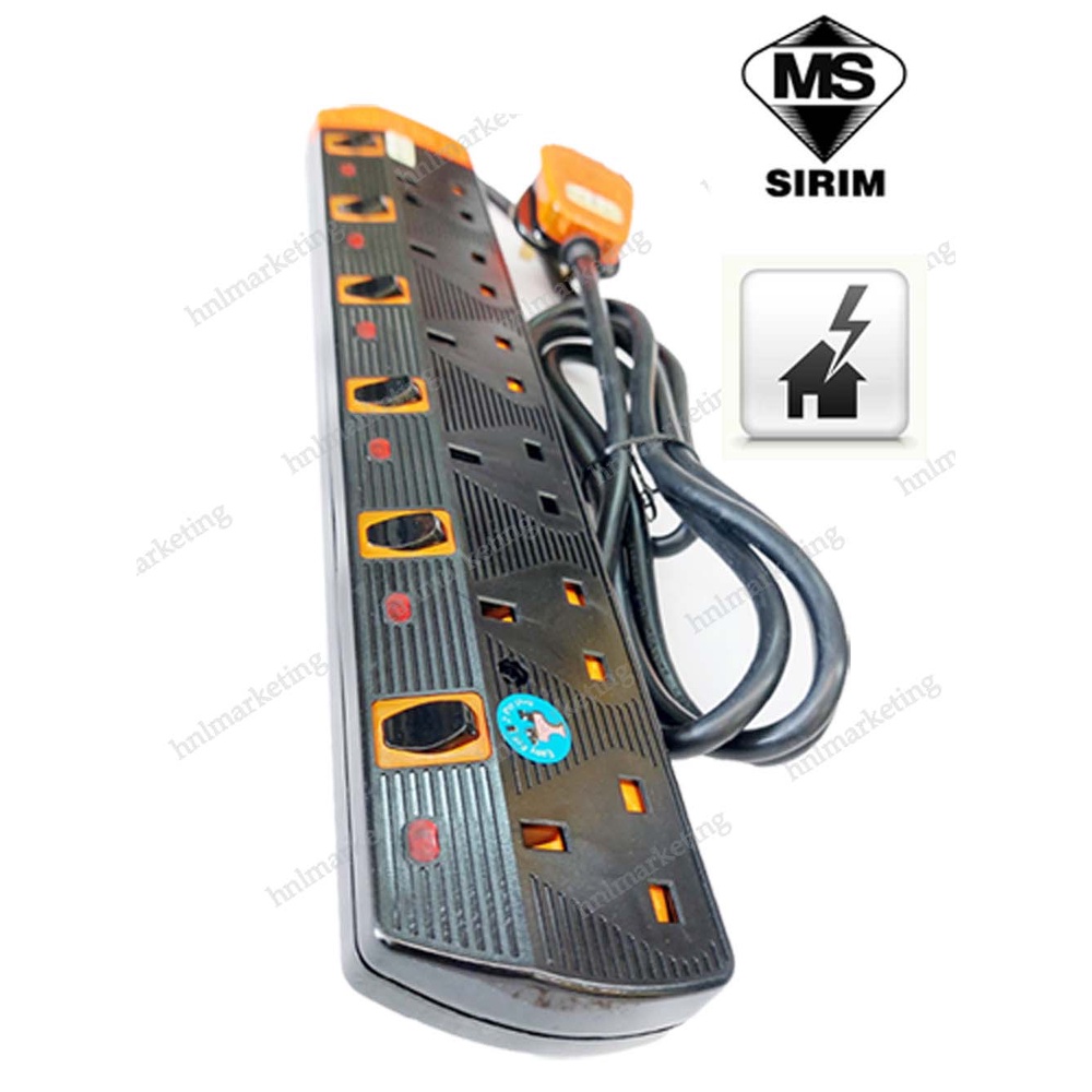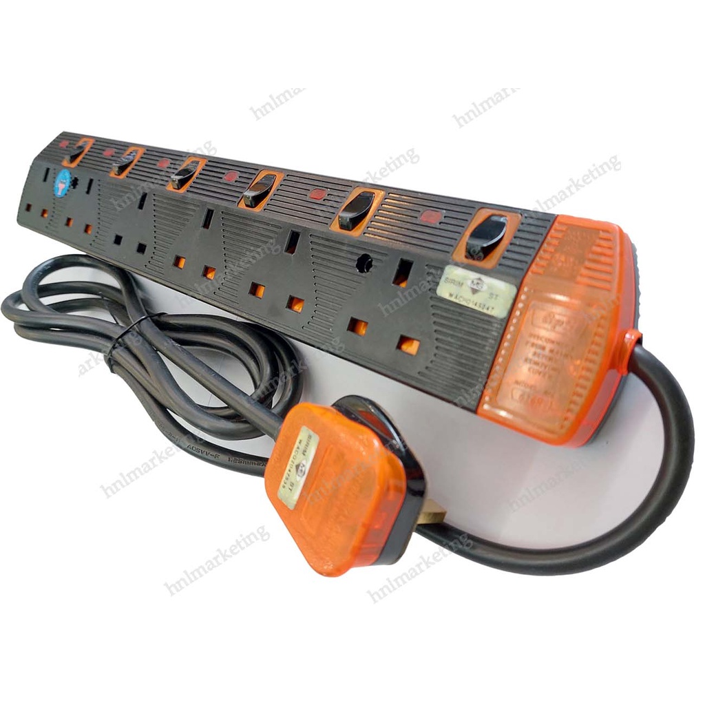 HEAVY DUTY 6 WAY TRAILING SOCKET EXTANSION CABLE with SURGE PROTECT 2M 3M 5M ( EXTENSION CORD )