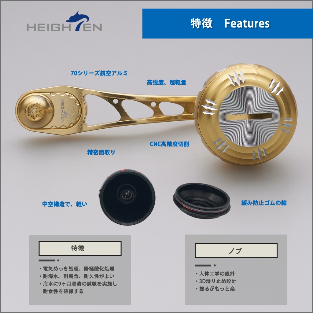 HEIGHTEN 65mm-75mm Reel Handle With 35mm Knob for Shimano Calcutta Conquest Daiwa Kastking Abu Garcia Penn Reel