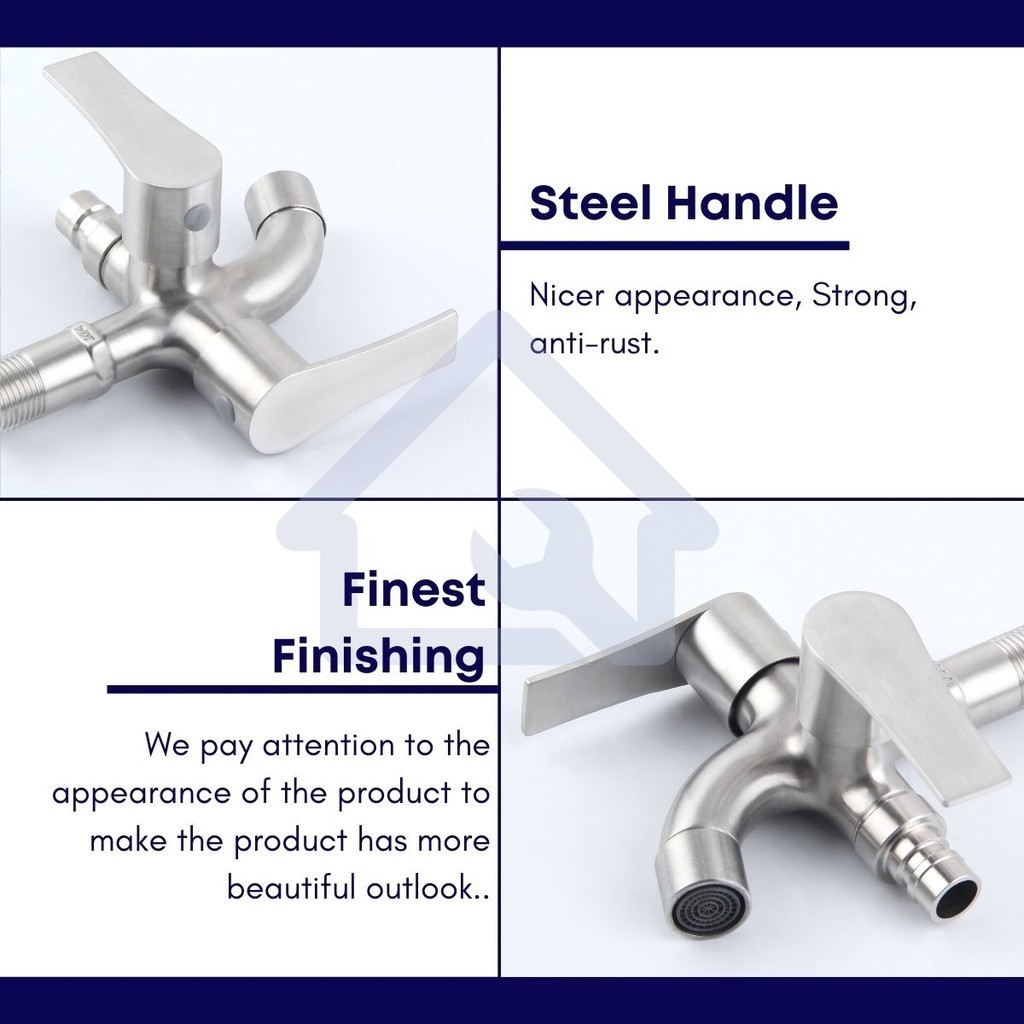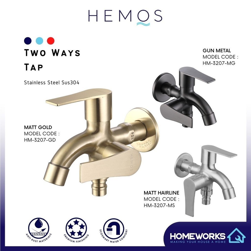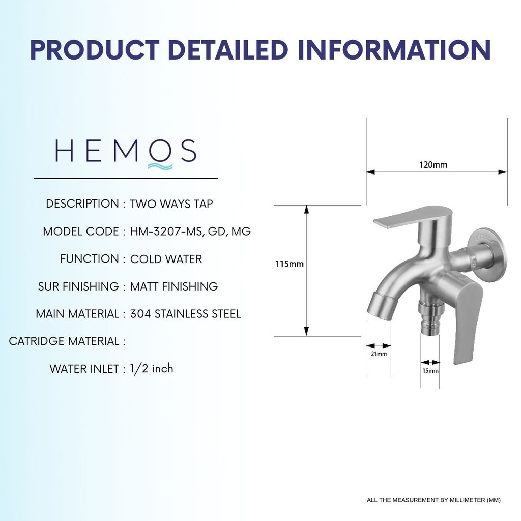HEMOS BATHROOM FAUCET STAINLESS STEEL SUS 304 2TO1 TWO WAY TAP HM-3207