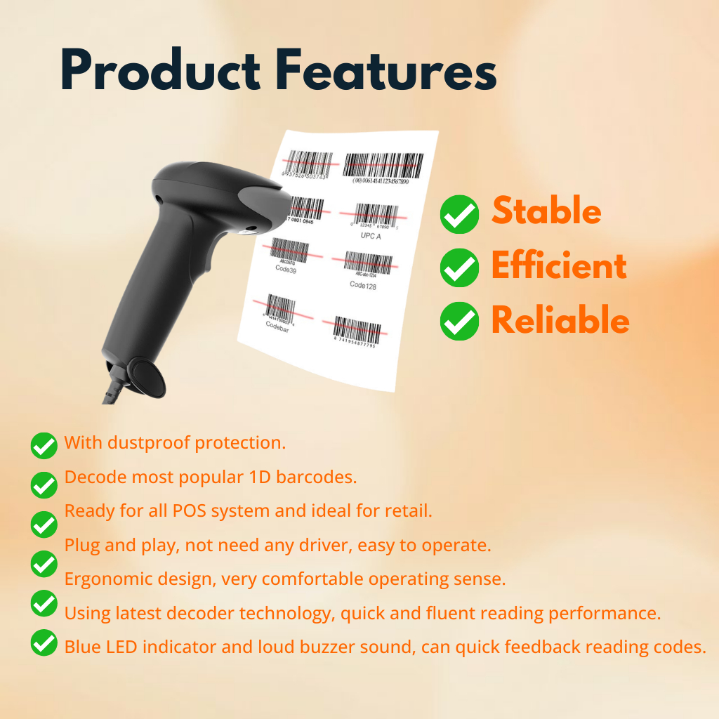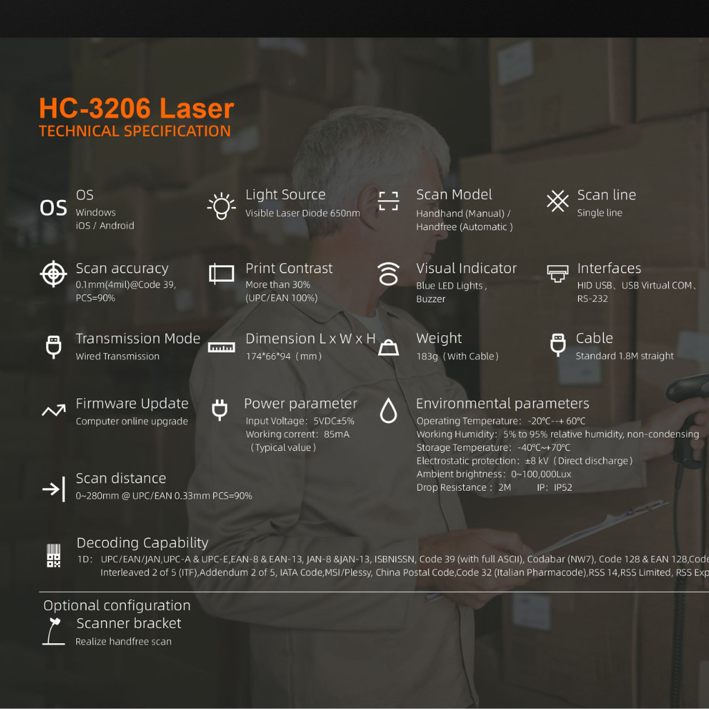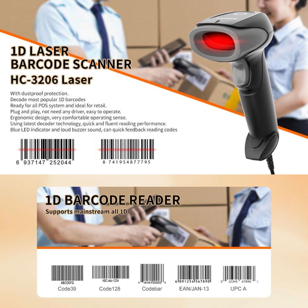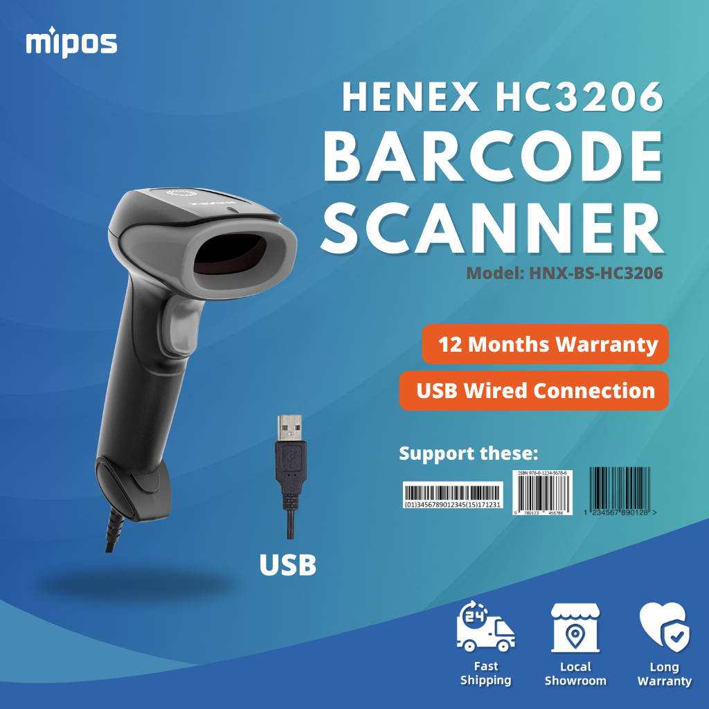HENEX HC-3206 1D & 2D Desktop Barcode Scanner USB Wired | USB Scan Inventory Stock POS System