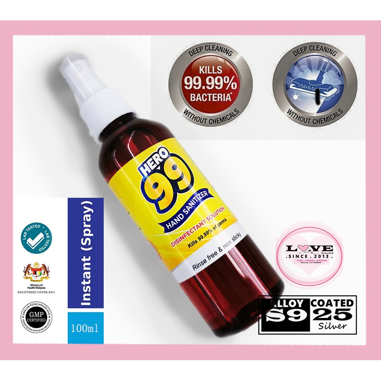 HERO 99 Anti-Bacterial Hand Sanitizer 100ml Registered with KKM DETTOL ANTABAX WIPES HAND SPRAY INSTANT GERMS CLEANER