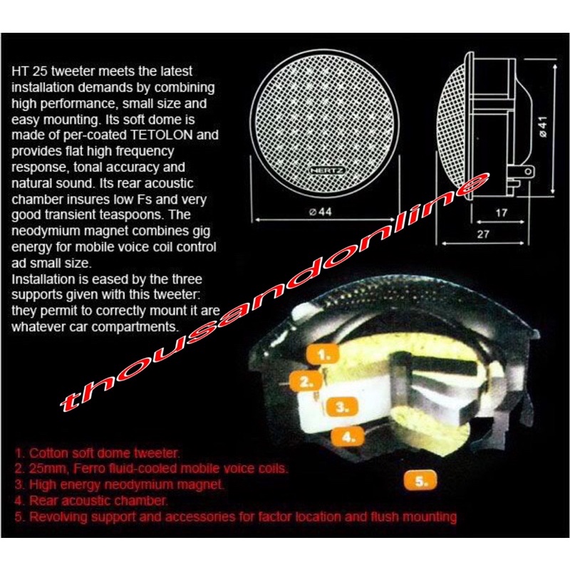 HERTZ HT-25 HT25 / ET20 (WITH CROSSOVER) DOME TWEETER-(MADE IN ITALY)
