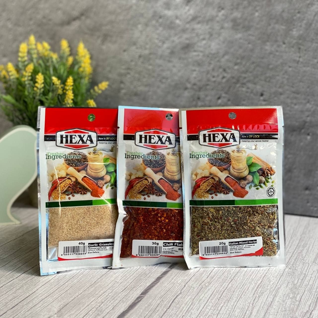 HEXA Garlic Granulated 40gm Italian Mixed Herbs 20gm Chili Flakes 30gm Bawang Putih Herba Campuran Serpihan Cili SET