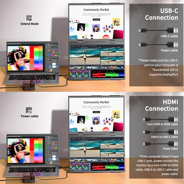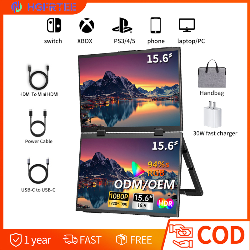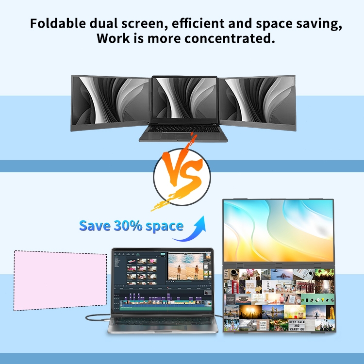 HGFRTEE Folding Monitor Dual Portable Displayuilt-in Stand 18.5 Inch Folding Monitor