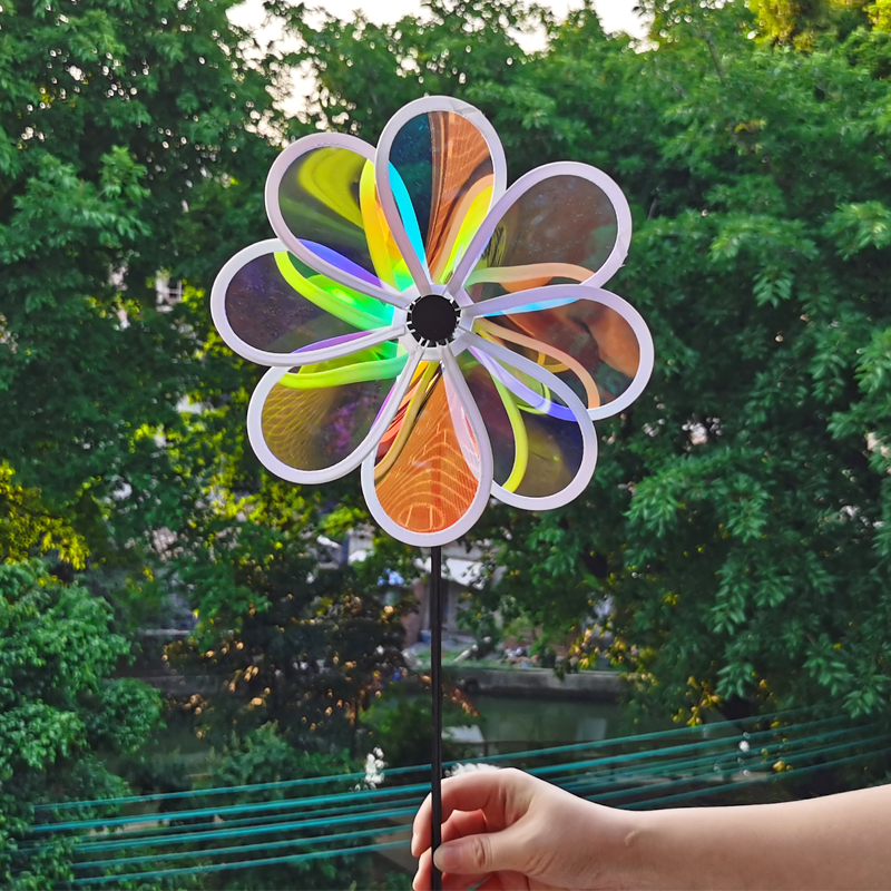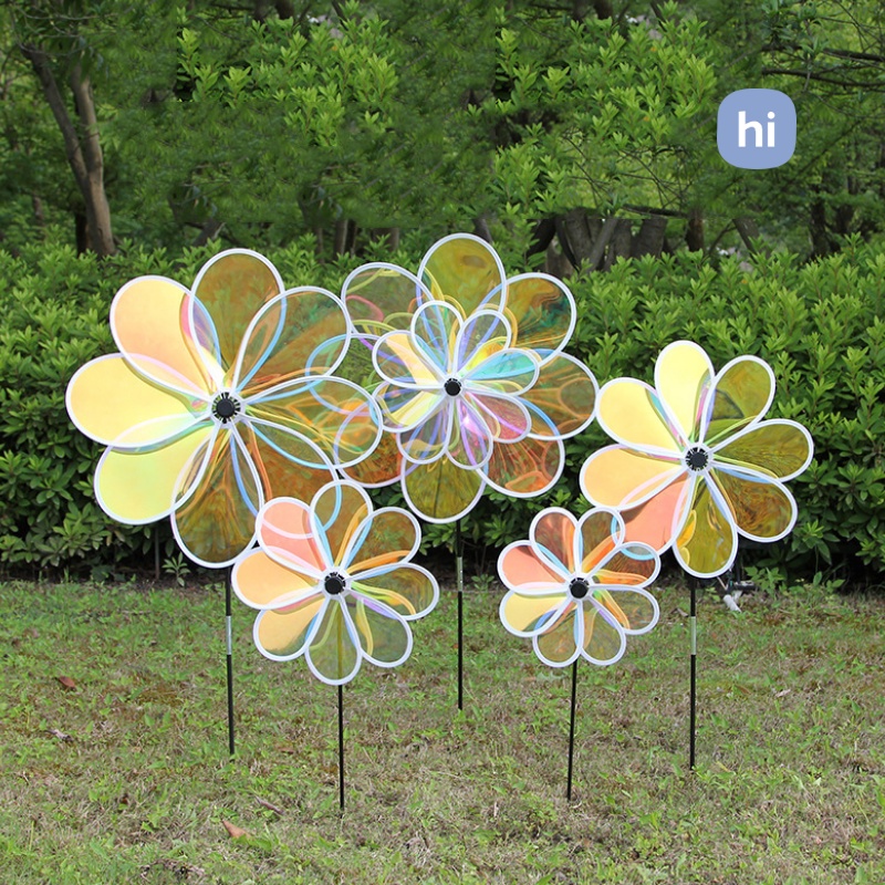 HI HOMES Colorful Windmill Transparent Reflective Windmill Building Villa Scenic Area Decoration Kindergarten Outdoor Sun Protection And Waterproof Rotary Windmill