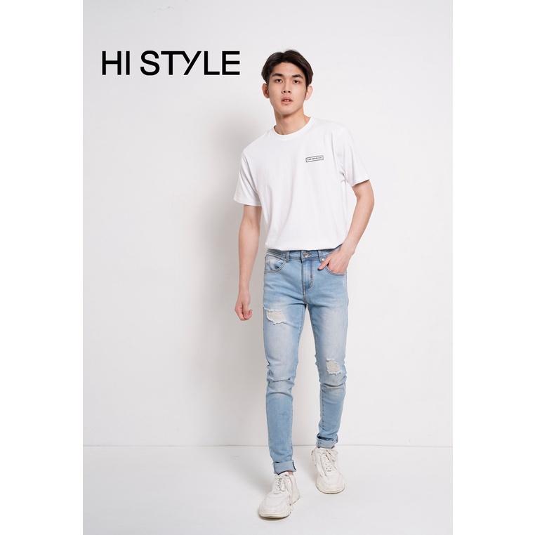 [ONLINE EXCLUSIVE] HI STYLE Men Skinny Fit Long Jeans - Light Blue - HSR310134
