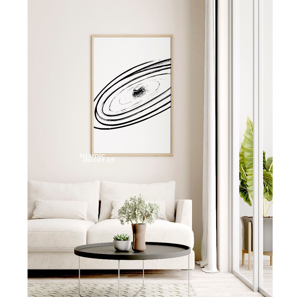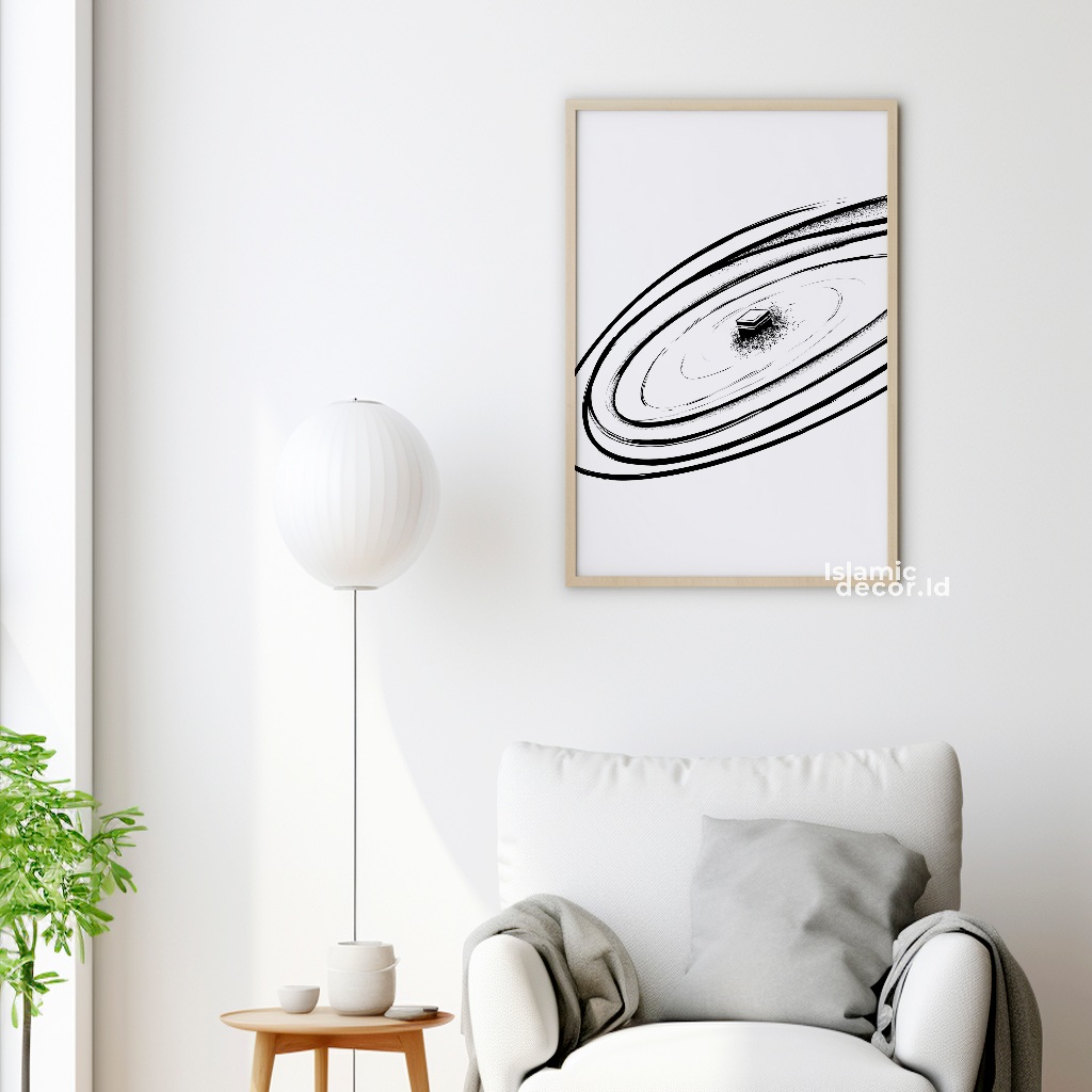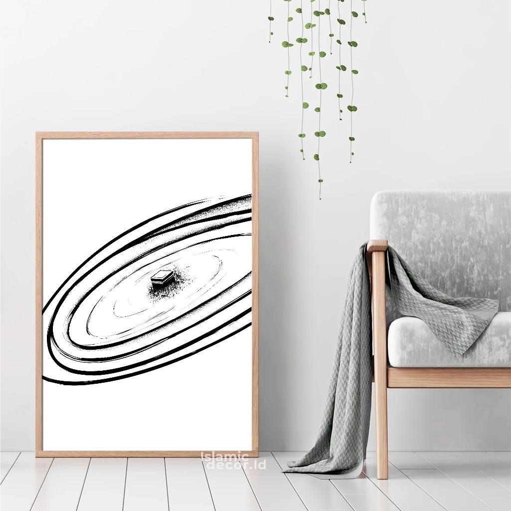 Abstract Black and White Tawaf Wall Decoration Minimalist Sketch with Pine Wood Frame | Islamic Wall Decoration | Islamic Home Display