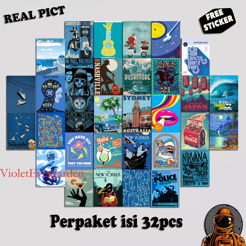 HIASAN DINDING Vintage AESTHETIC POSTER/ FREE STICKER/ FREE CUSTOM/ Room Decoration Wall Decoration/ RETRO Paste POSTER