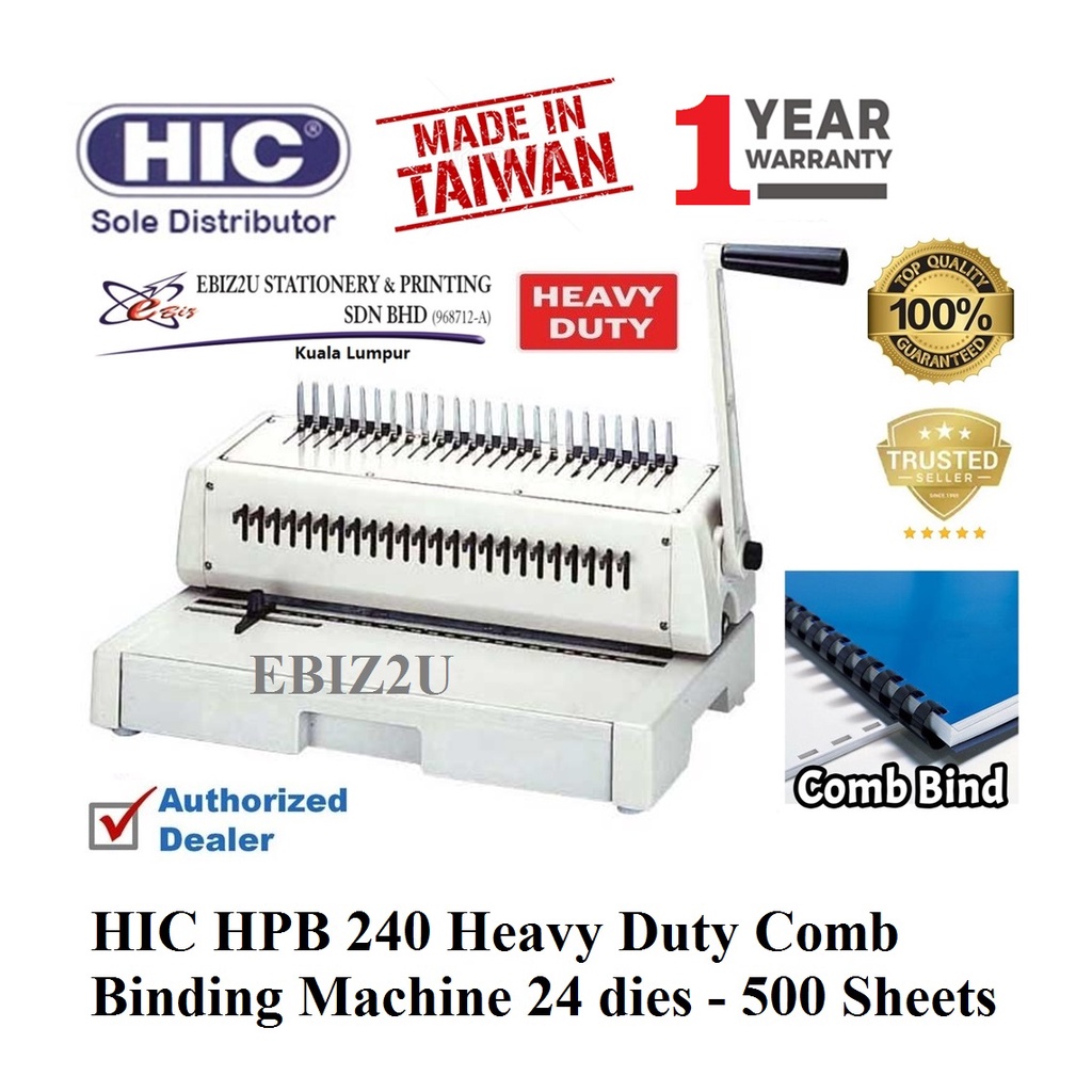 HIC HPB 240 Heavy Duty Comb Binding Machine 24 dies - HPB-240, Comb Binder Machine, Heavy Duty