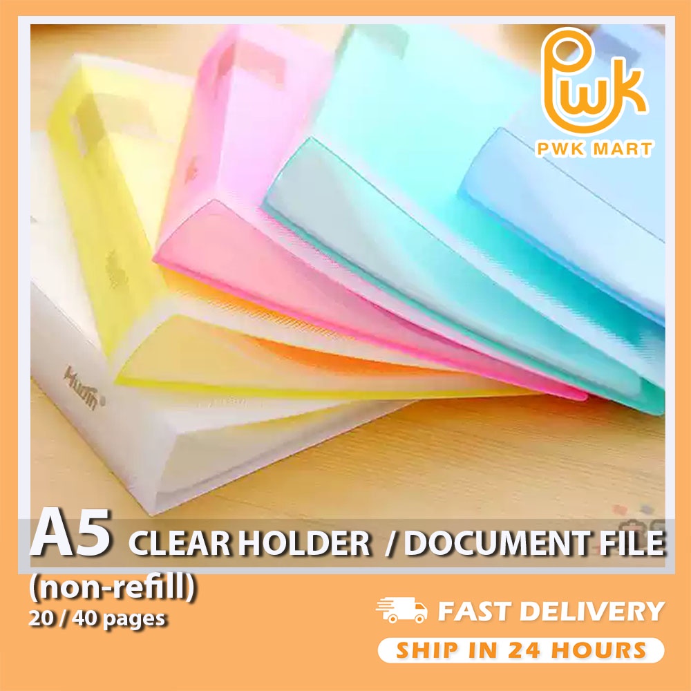 HIGH QUALITY* KOBEST A5 PVC CLEAR HOLDER/DOCUMENT FILE/FAIL SIJIL 20/40 pockets (LIGHT COLOR ) Non-Refillable