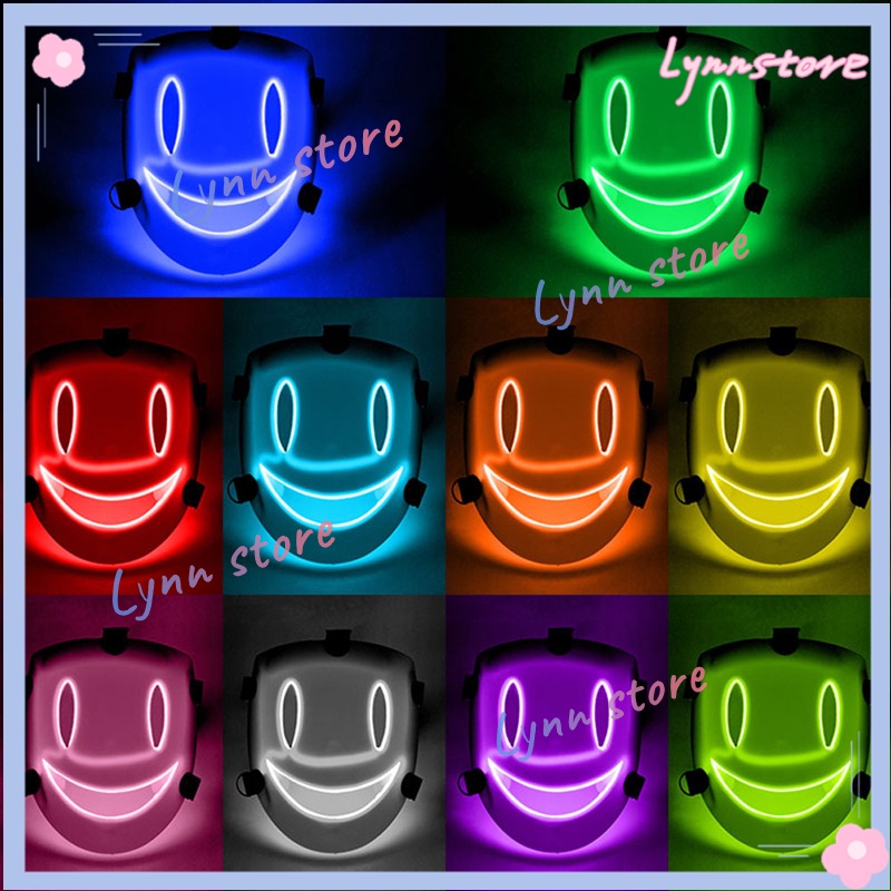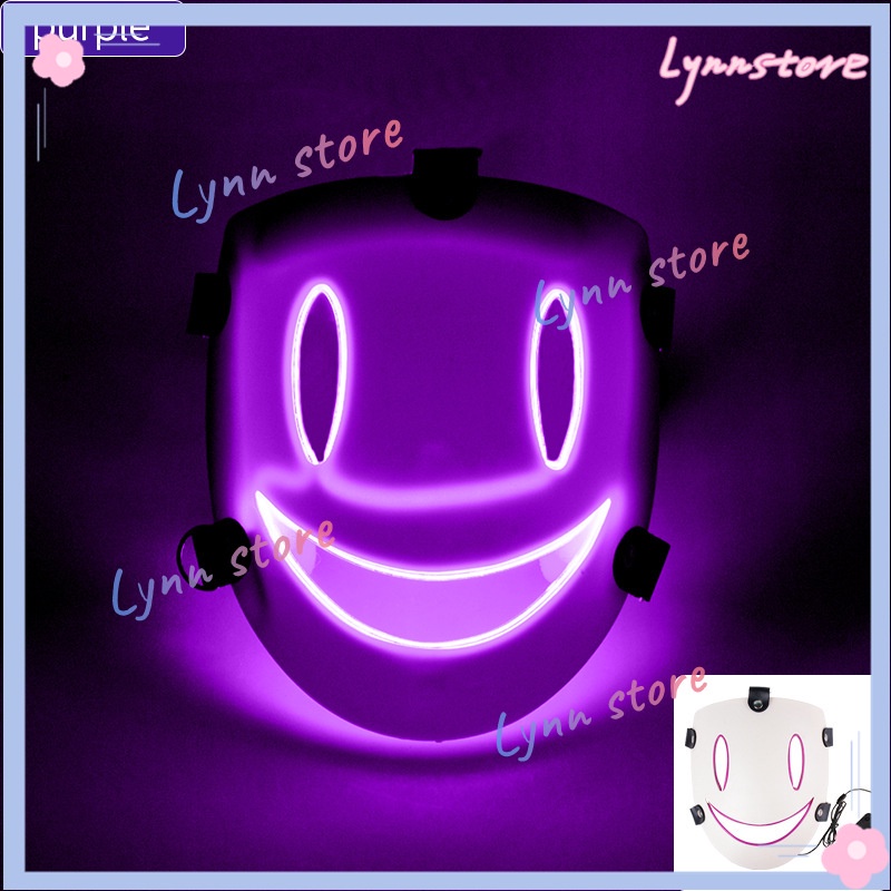 HIGH-RISE INVASION Mask Halloween Masker Party Tenkuu Shinpan Mask Breathable Glowing LED White Mask for Cosplay Prop