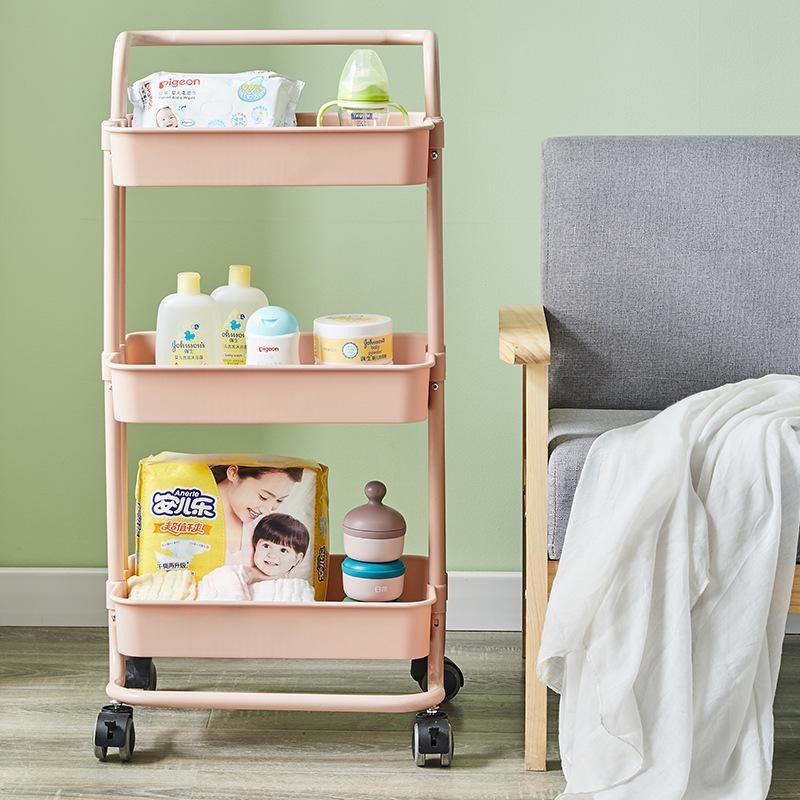 HIGHTUNE 3 Tier Trolley Multi-functional Kitchen Storage Rack Baby Stroller Book Shelving Office Shelves with Plastic Wheel
