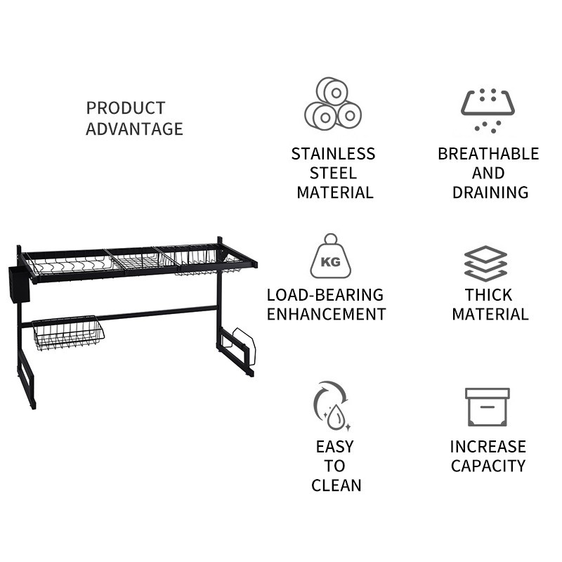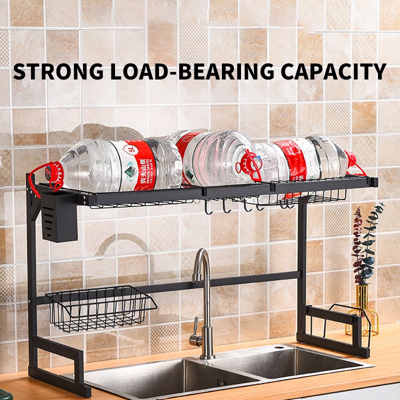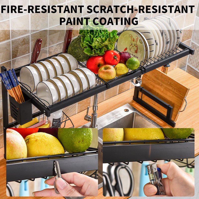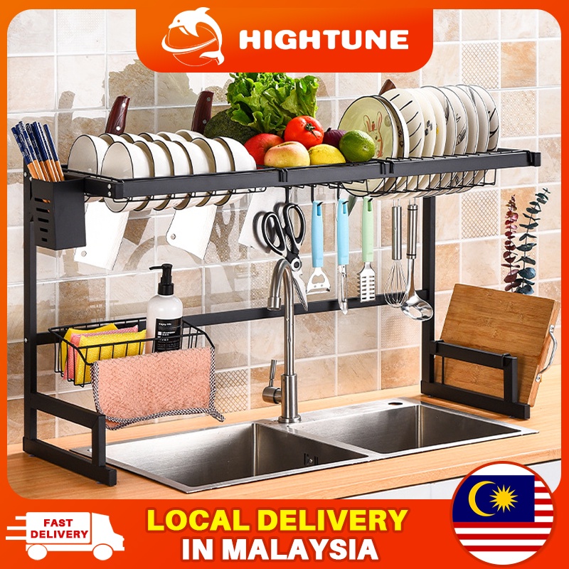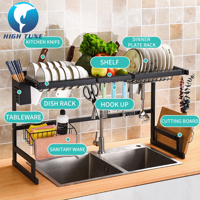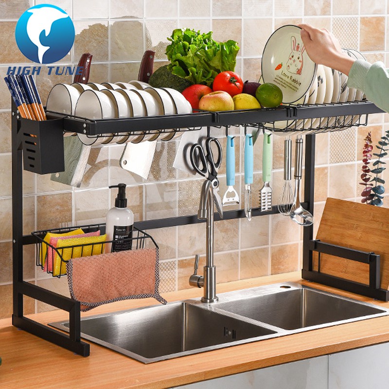 HIGHTUNE 65CM Kitchen Sink Rack Dish Rack Stainless Steel Dish Drainer Plate Drying Storage Shelf