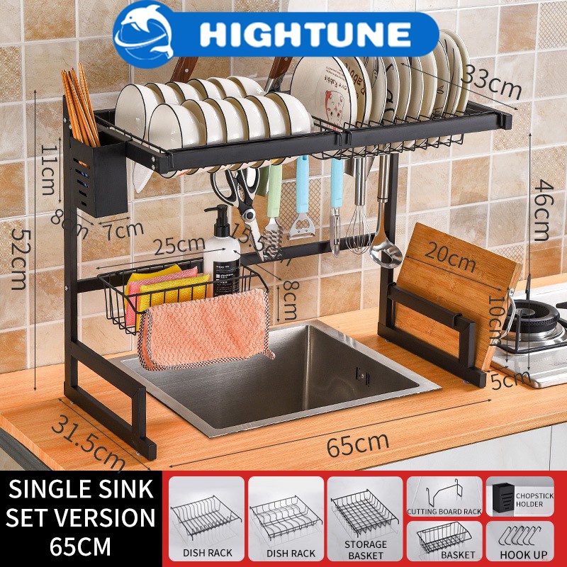 HIGHTUNE Rak Pinggan Sink Rak Pinggan Stainless Steel Rak Dapur Sinki Dish Drainer Kitchen Organizer Storage Rack Dish Rack
