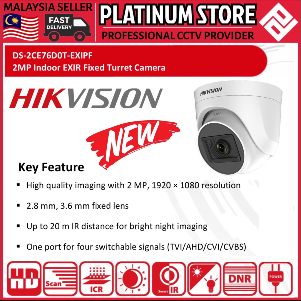 HIK HIKVISION 2.0MP 1080P Full HD Indoor IR INFRARED Dome TVI 2MP Camera X16pcs DS-2CE76D0T-EXIPF CCTV Night Vision View