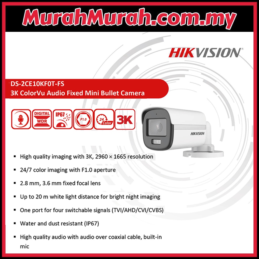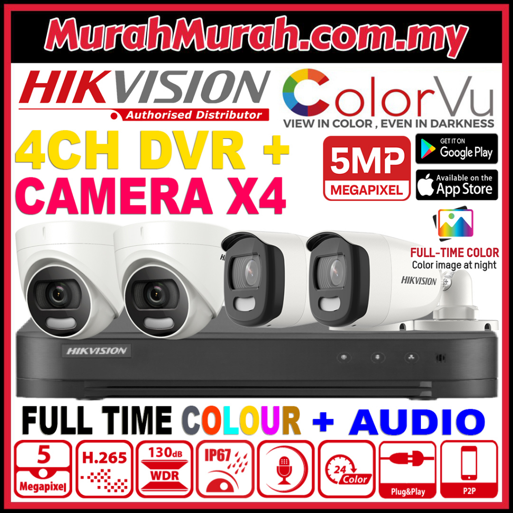 HIK HIKVISION COLORVU 5.0MP 4CH Package Set DVR + 4 Camera with Audio Mic Voice Record 5MP CCTV Night Colour View