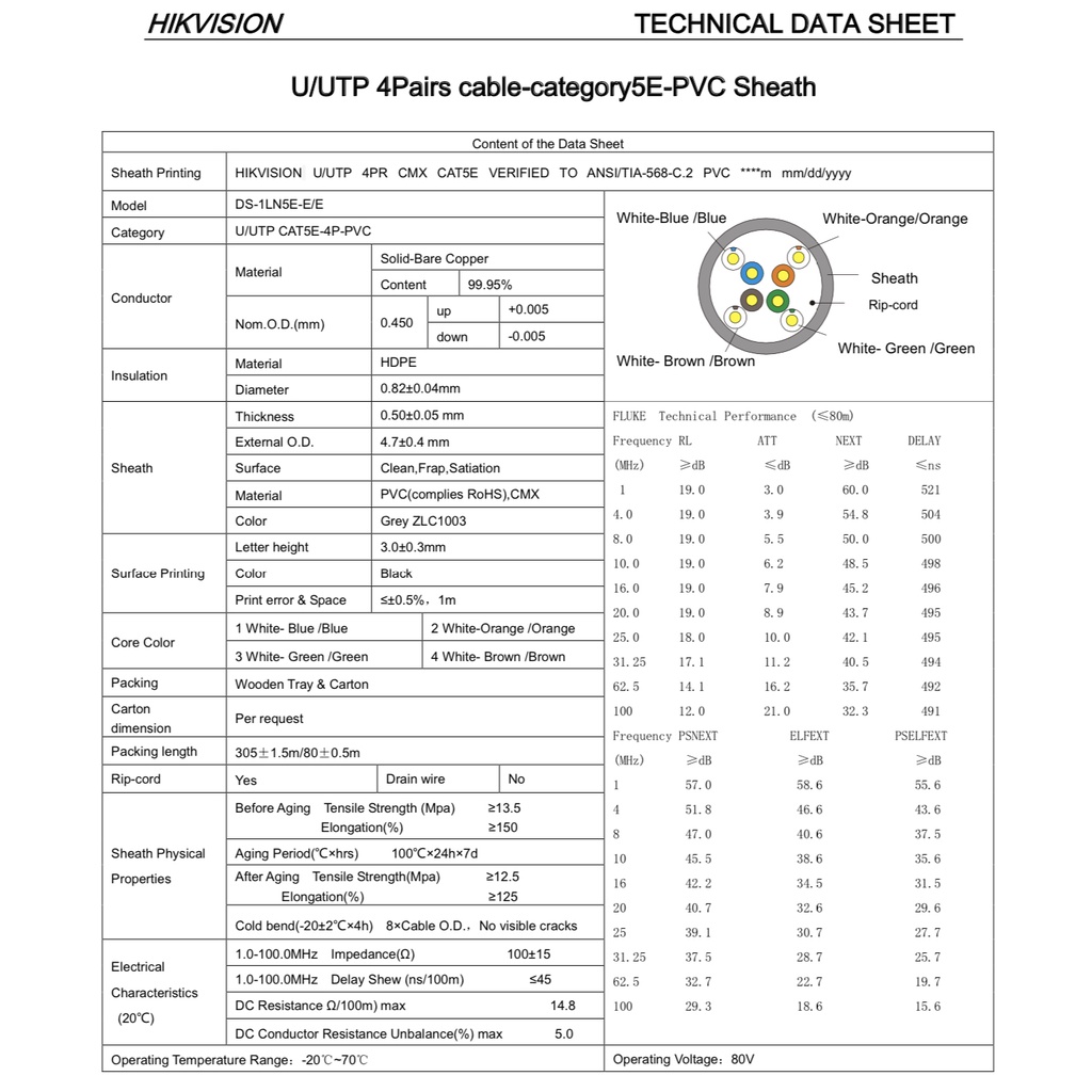 HIK HIKVISION DS-1LN5E-E/E NETWORK CABLE CAT 5 CAT5 CAT5E UTP LAN Internet Ethernet For CCTV Installation POE RJ45 305M
