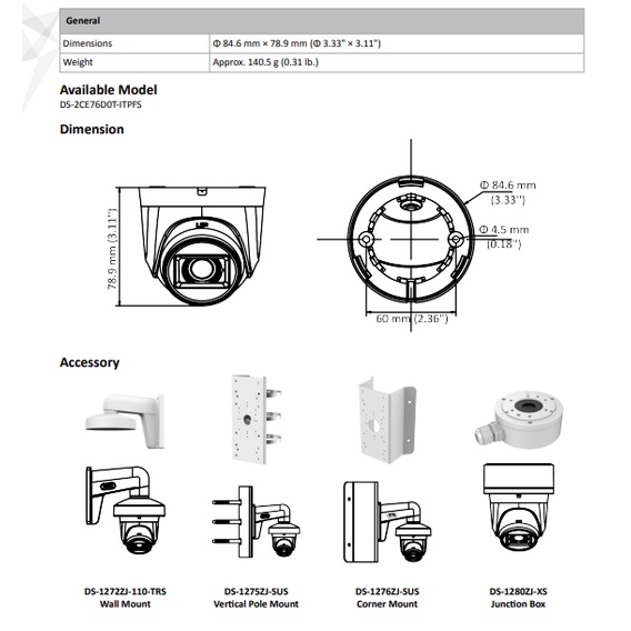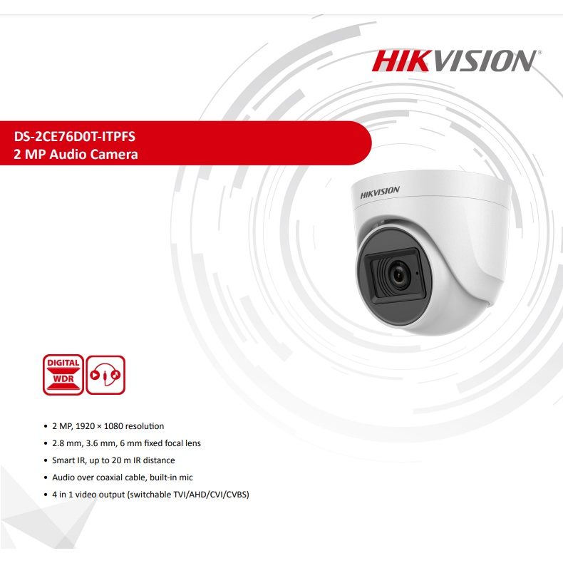 HIK VISION 2MP Audio Dome DS-2CE76D0T-ITPFS (built-in mic) - NEW*