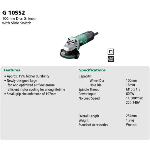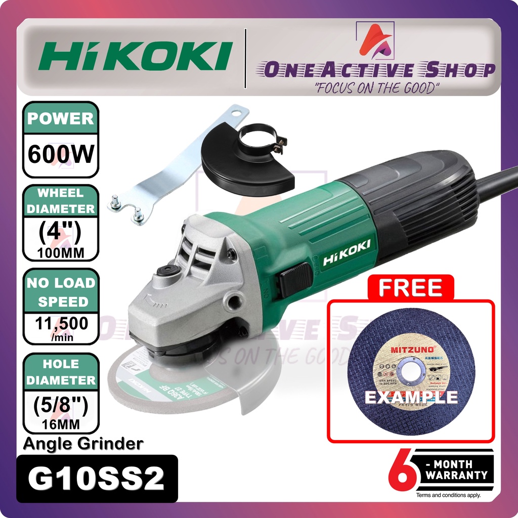 HIKOKI 4'' Angle Grinder 600W G10SS2 - 6 Month Warranty ( HIKOKI ANGLE GRINDER POTONG KAYU BESI SEMEN MOZEK G10S / G10SS