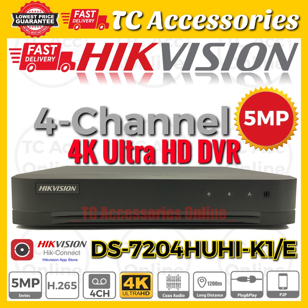 HIKVISION 4-CHANNEL 4K DVR CCTV HIK DS-7204HUHI-K1/E 4CH Digital Video Recorder Full HD Support up to 5MP P2P on phone