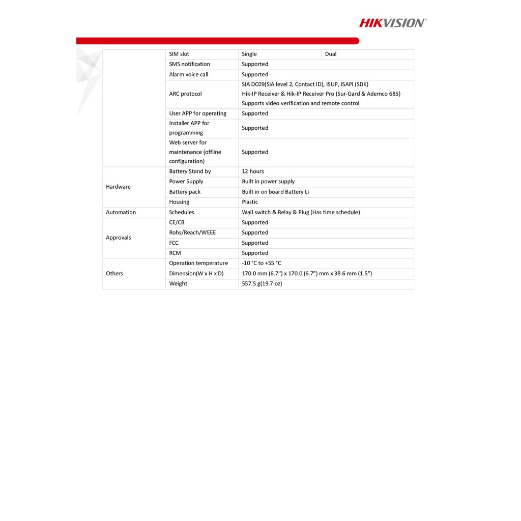 HIKVISION 433MHz DS-PWA64-KIT-WB WIRELESS CONTROL PANEL KITS WITH KEYFOB