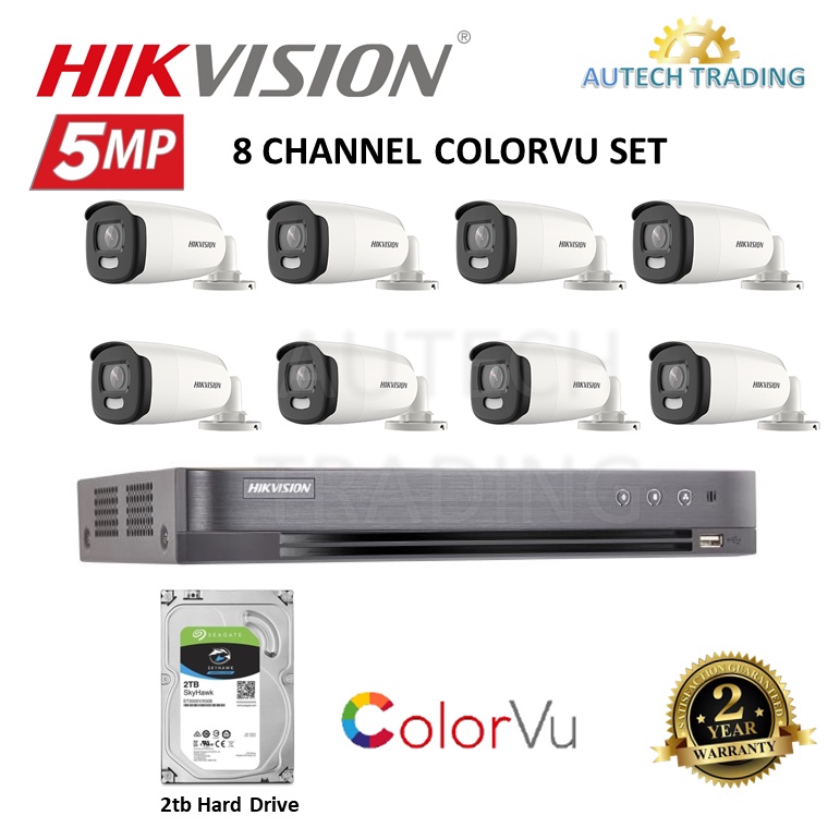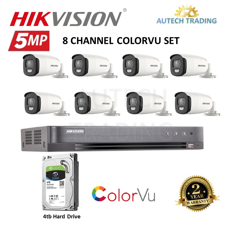 HIKVISION 5MP COLORVU DS-7208HUHI-K1 Full HD 8 Channel indoor outdoor CCTV Set Package 8ch DS-2CE72HFT-F DS-2CE10HFT-F