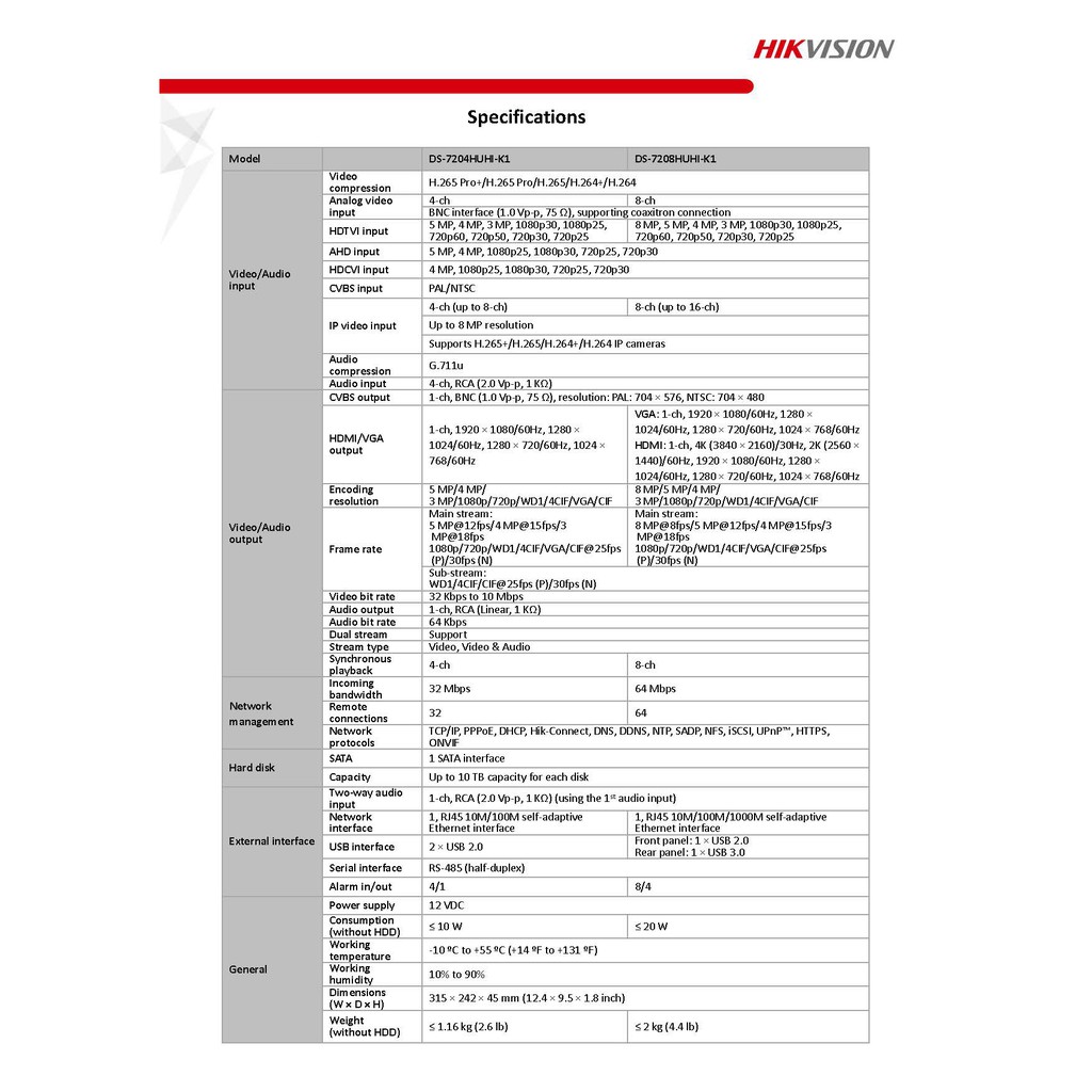 HIKVISION 5MP DVR - DS-7204HUHI-K1/E / DS-7208HUHI / DS-7216HUHI / IDS-7208HUHI-M1/S