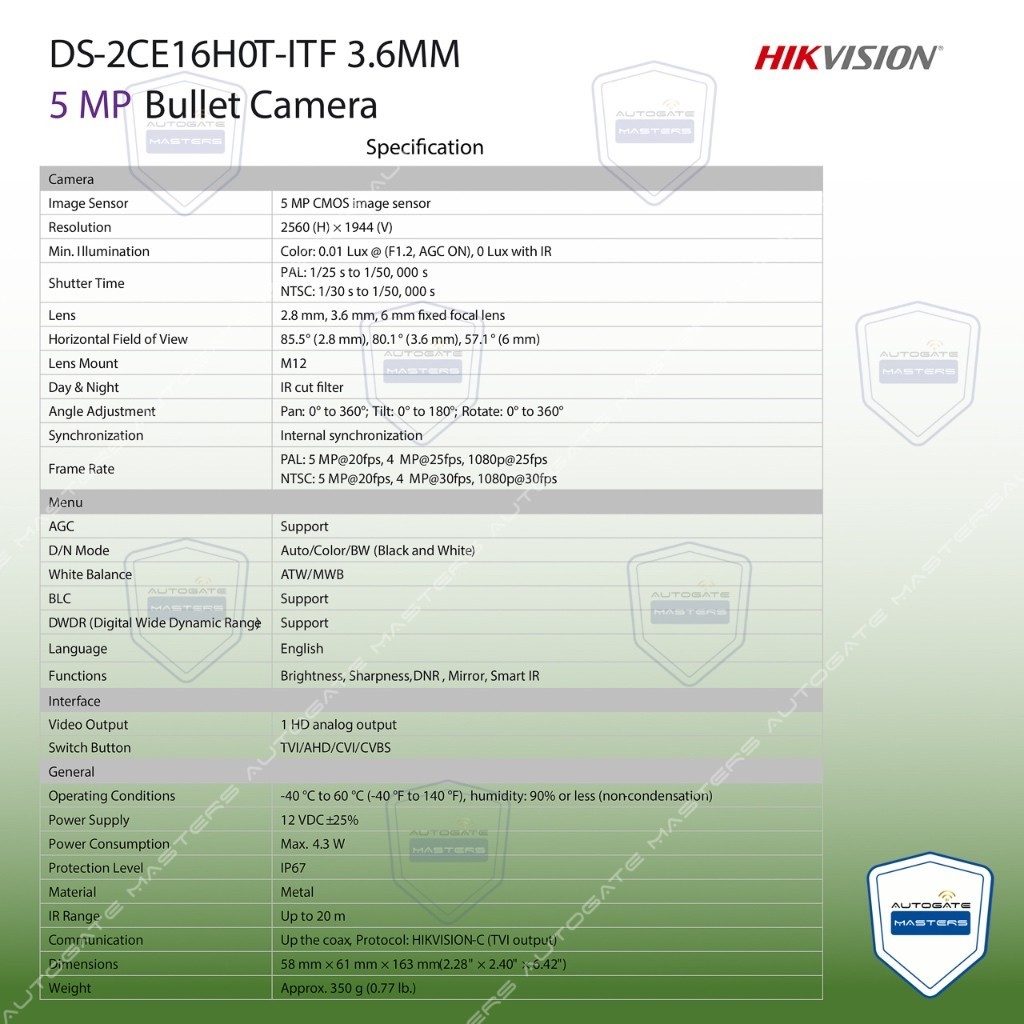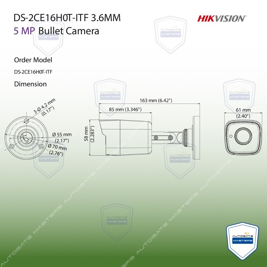 HIKVISION CCTV DS-2CE16H0T-ITF 5MP 3.6MM Fixed Mini Bullet Color camera