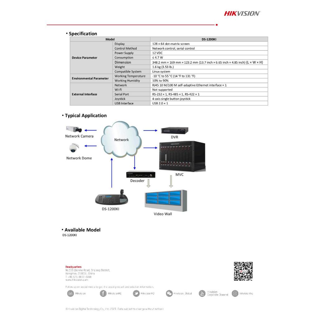 HIKVISION DS-1200KI CCTV Network 128x64 LED Dot Matrix Screen PTZ and Video Wall Controller 4 Axis Joystick Keyboard
