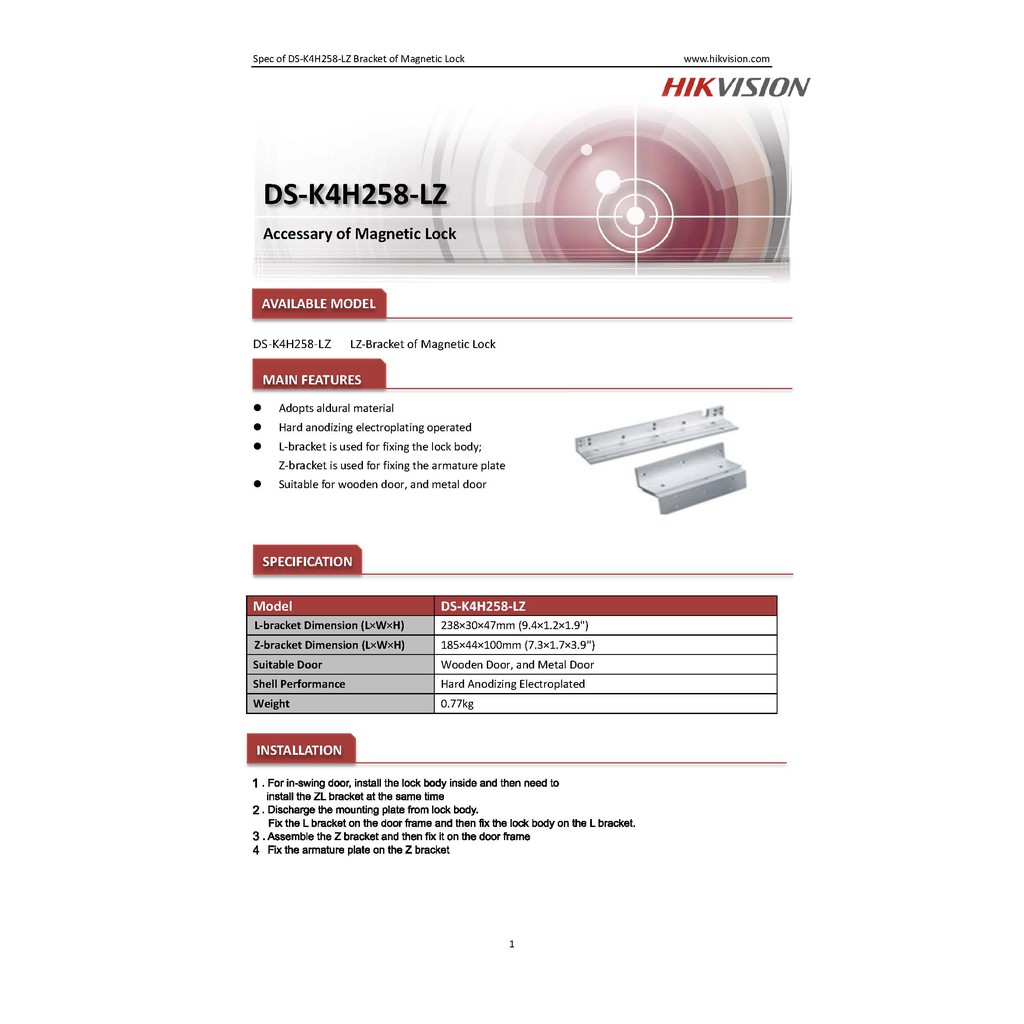 HIKVISION DS-K4H258-LZ Magnetic Lock Bracket