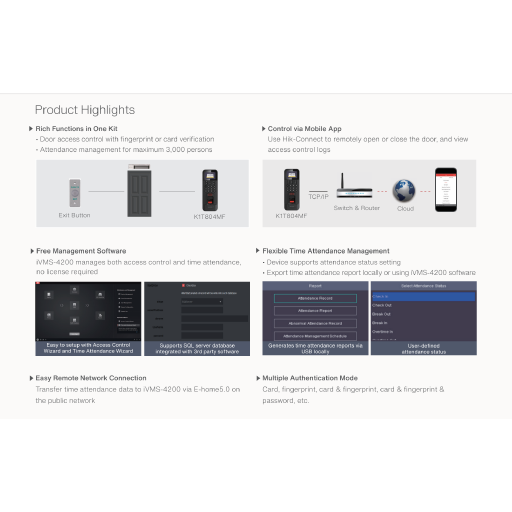 HIKVISION DS-KAS261 Fingerprint Access Control Terminal Kit 3000 Finerprint Storage Multiple Authentications