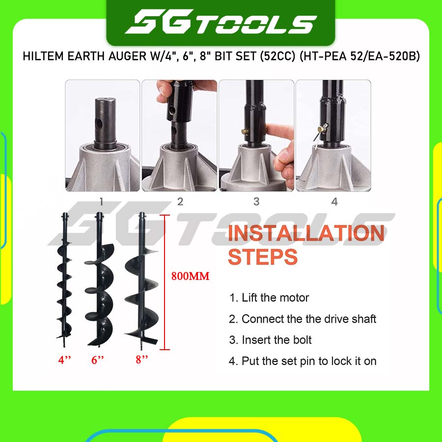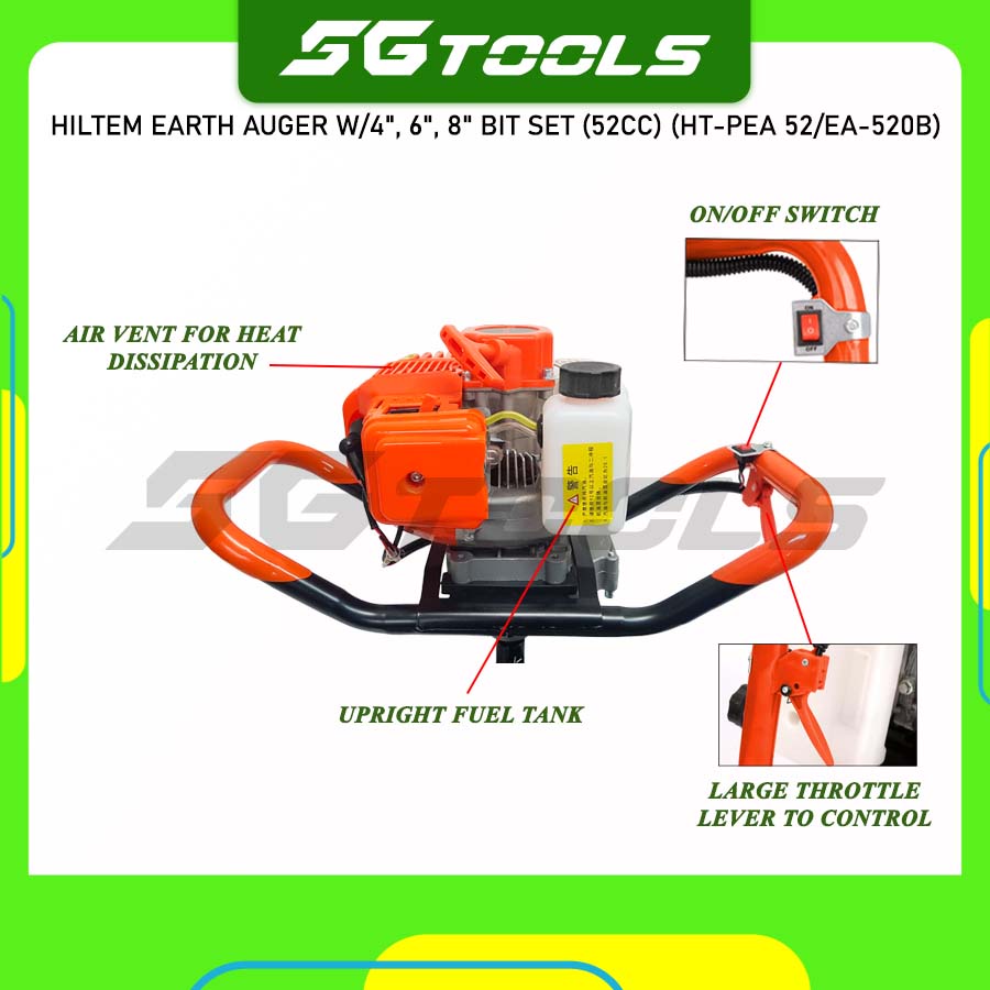 HILTEM EARTH AUGER DRILL MACHINE 2 STROKE 4" 6" 8" BIT SET (52CC) /MESIN KOREK TANAH LUBANG