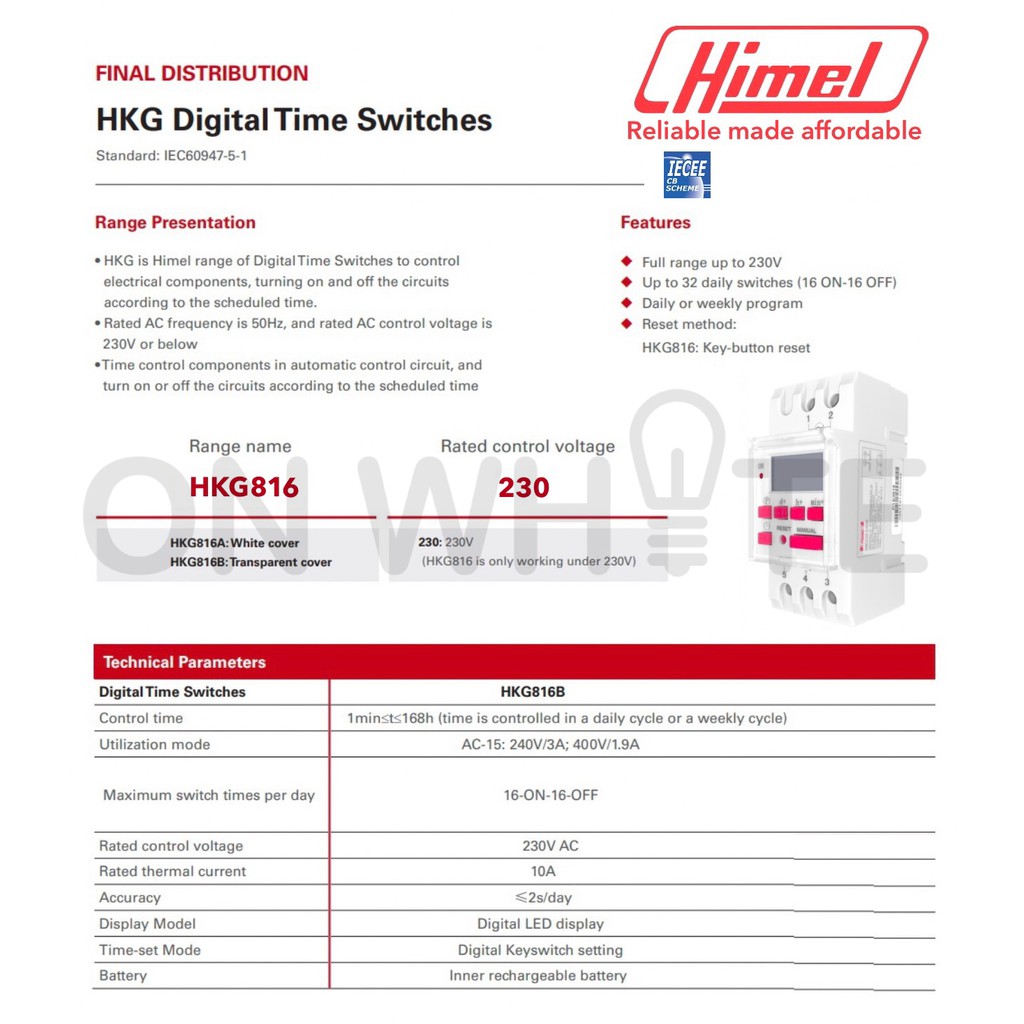 HIMEL HKG816B DIGITAL TIME PROGRAMMABLE TIMER HKG816 /HAGER/THEBEN/HONEYWELL/SCHNEIDER