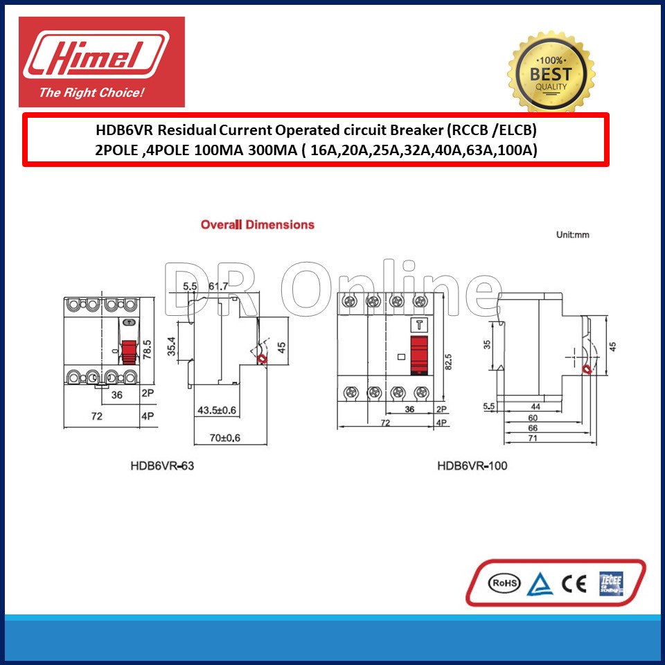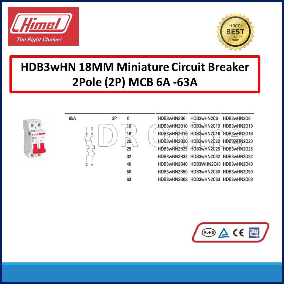 HIMEL MCB 2P HDB3WH MCB C-CURVE 2Pole 6KA 6A,10A,16A,20A,32A,40A,63A