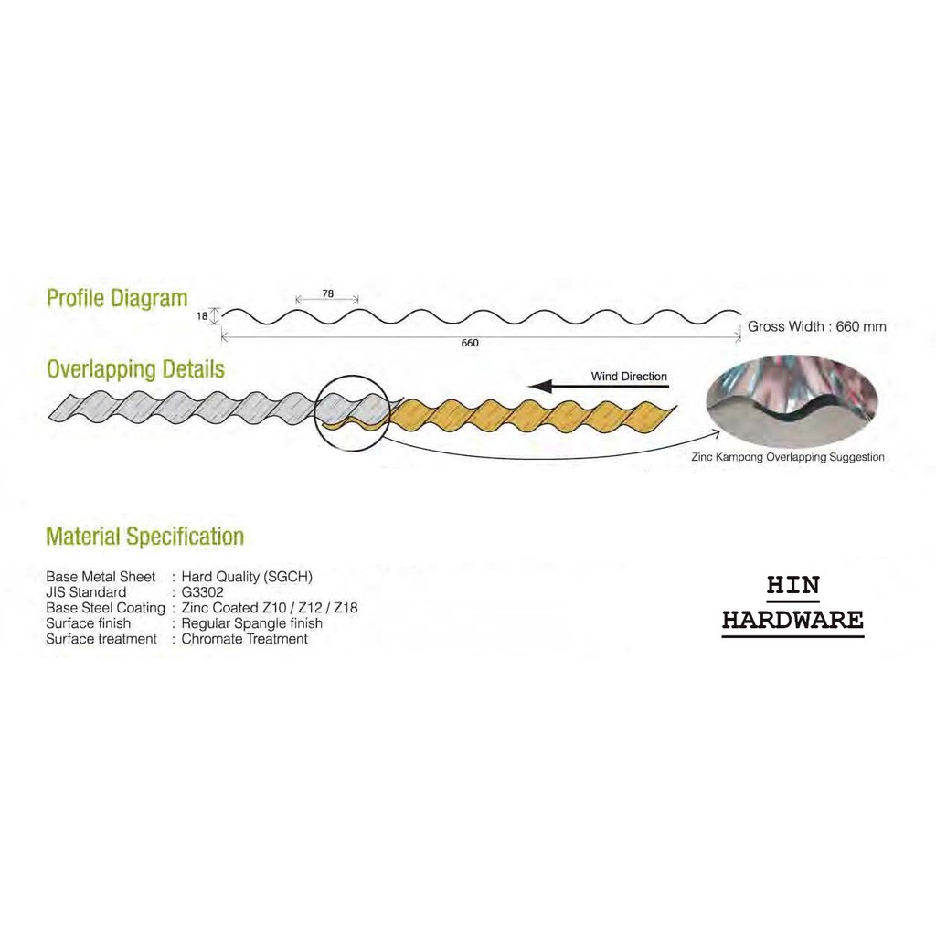 HIN 6 Feet Corrugated Metal Zinc Roof Sheet / Atap Zink Ombak / Zinc Kampung Sheet / Zinc Atap Rumah