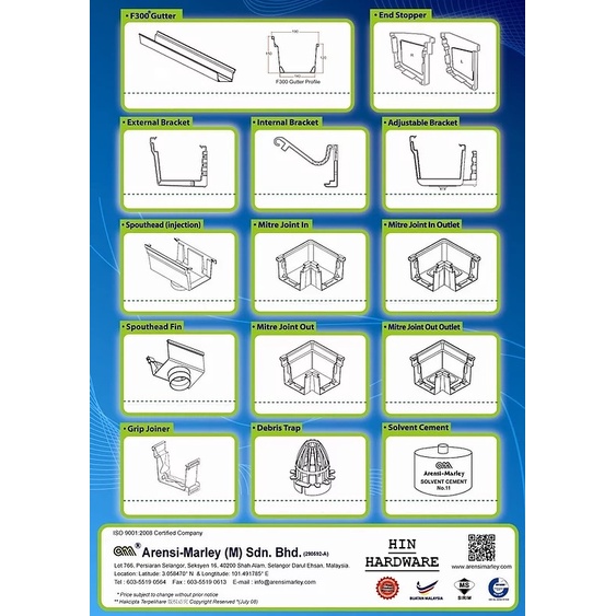HIN F300 PVC Gutter Mitre Fitting Grey (PVC Rainwater Gutter System ) / Salur Air Kelabu PVC