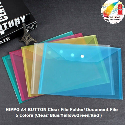 HIPPO A4 BUTTON Clear File Folder/ Document File -5 colors (Clear/ Blue/Yellow/Green/Red ) 10'S/PKT