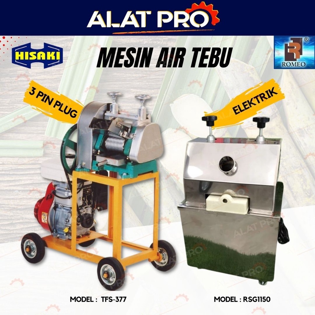 HISAKI Sugar Cane Juicing Machine Mesin Tebu TFS-377 Gasoline Engine & ROMEO Mesin Tebu Elektrik 1100W - RSG1150