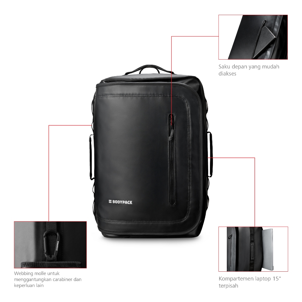 Bodypack Eraboard Duffle Backpack 15 Inch Gym Travel Touring Roadtrip Durable Durable 28 L - Black