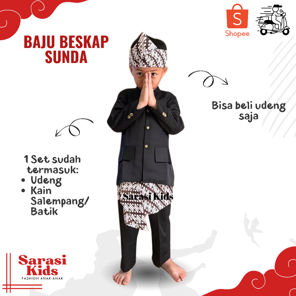 Sarasi - Children's Traditional Clothes - Sundanese traditional clothes for boys, boys' beskap clothes, boys' basofi, West Javanese traditional clothes for boys, Sundanese clothes for children, betawi beskap, Sundanese children's beskap, black children's