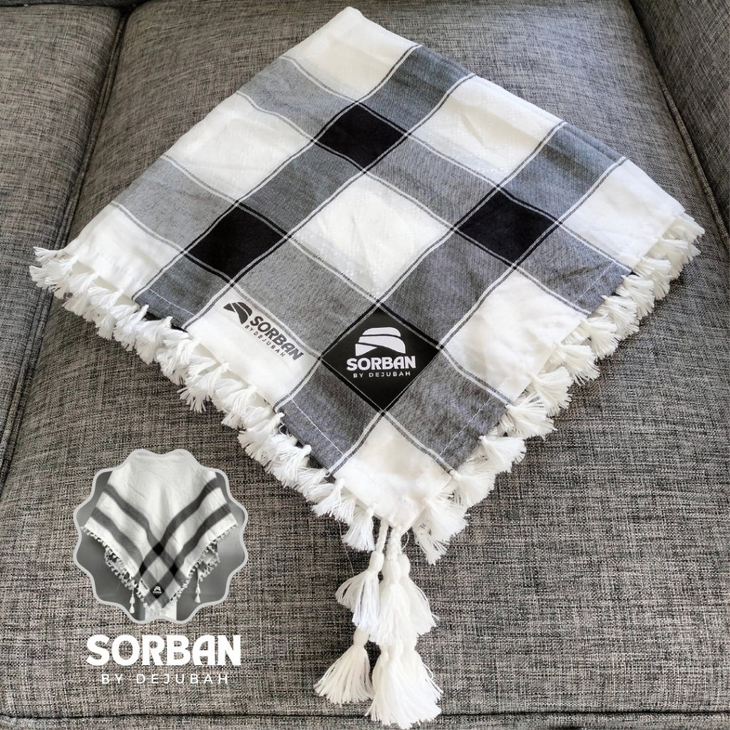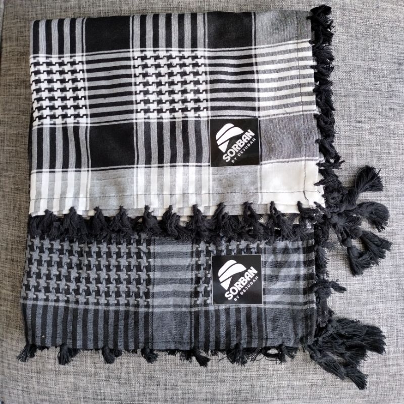 Derobe - Embossed tactical turban for adults & boys, Arabic Palestine, black and white Serban Lelaki Dewasa Serban Arab Lelaki