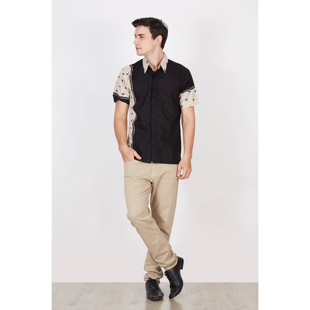 HITAM PUTIH PRIA KEMEJA Men's Batik Shirt Short Sleeve Cap Black And White Abstract
