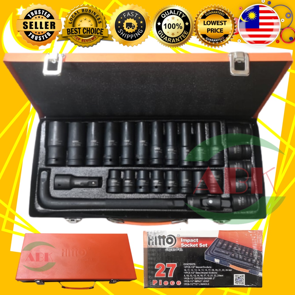 HITTO METRIC 27PCS 1/2" 08-24MM SHORT & DEEP IMPACT SOCKET SET (MADE IN TAIWAN)