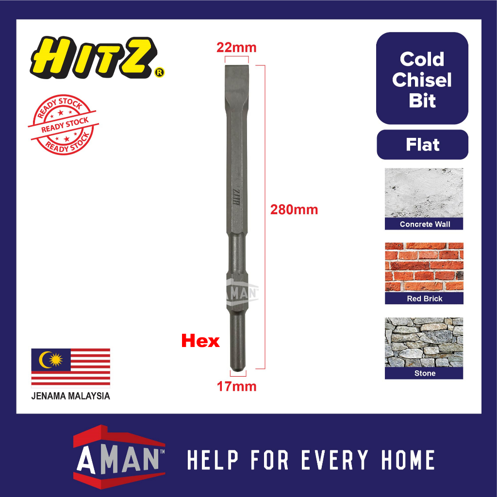 HITZ Cold Chisel Bit SDS Plus Hexagon Chisel Bit Concrete Chisel Flat Point Chisel Hammer Drill