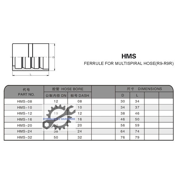 HMS-08 TO HMS-16 HMS FERRULE FOR MULTISPIRAL HOSE(R9-R9R)